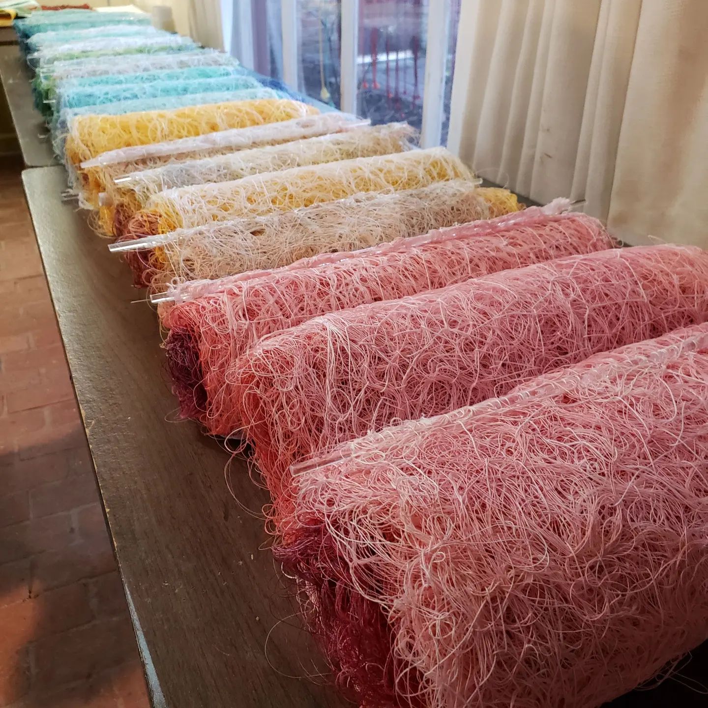 Materials:twisted fabric cord, recycled fabric, cotton, polyester, perle cotton thread
