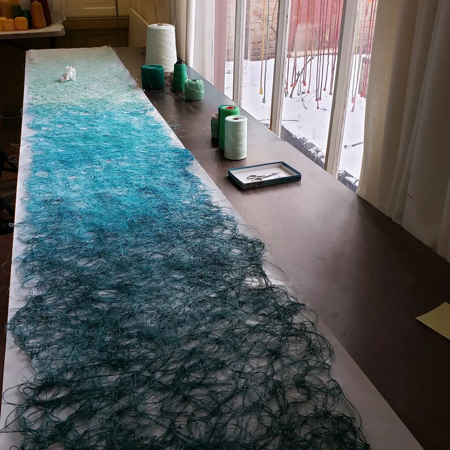 Chronos and Kairos, 74″ x 62″, Random woven and stitched, 2018. The John M. Walsh III Collection Water FEATURED, an exhibition featuring pieces commissioned by Jack Walsh III to celebrate his love of water at International Quilt Museum, September 30, 2022 to April 15, 2023. One of my works, Chronos and Kairos, is in the show.
