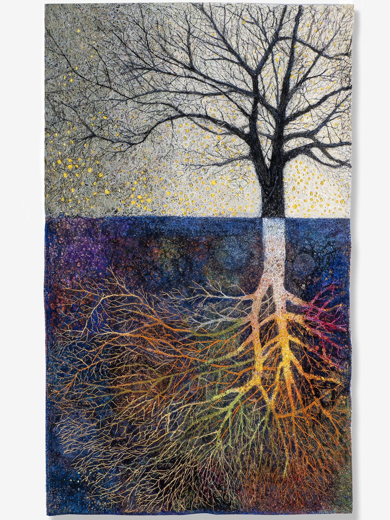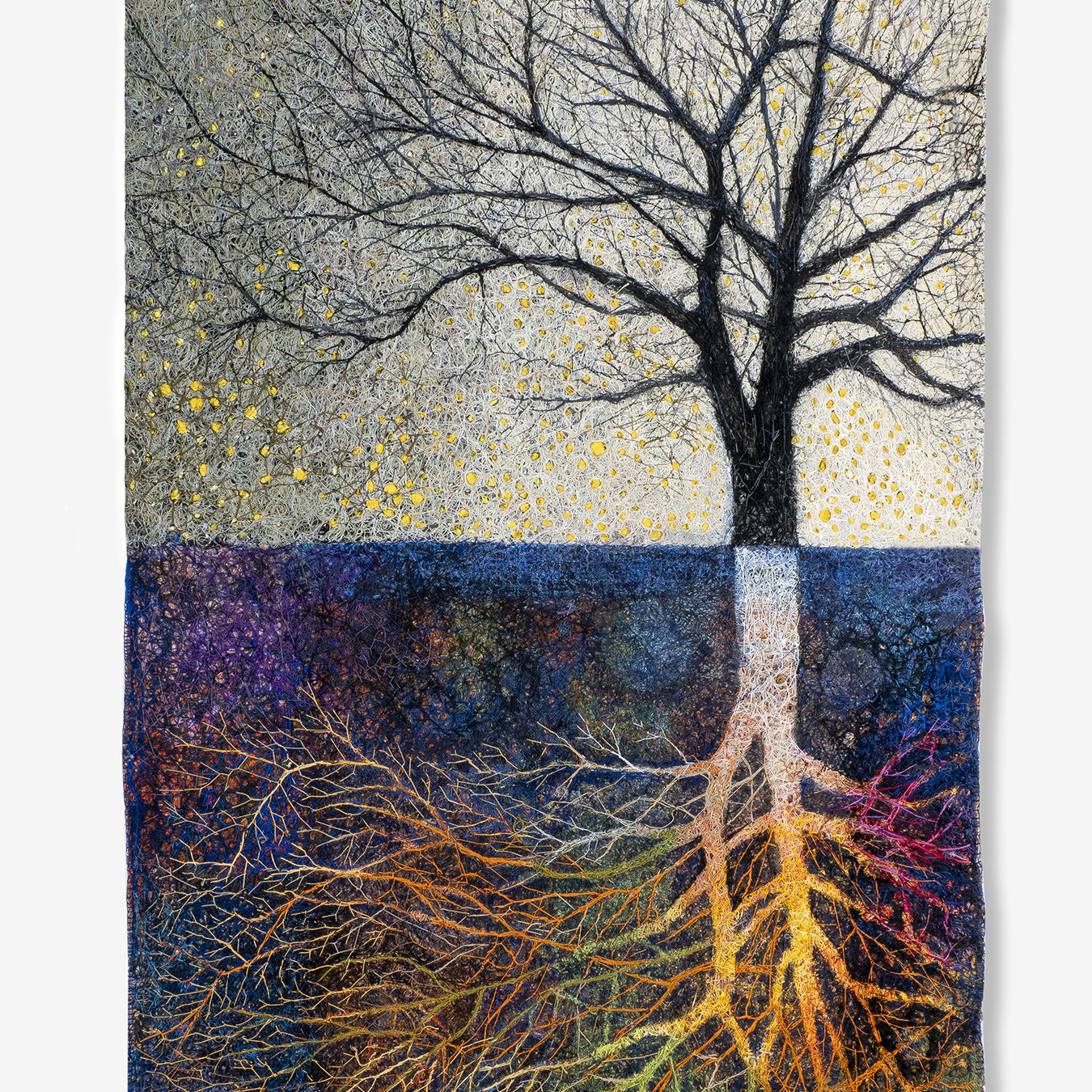 “Web of Life” is a concept I pondered as I worked with the entanglement of threads in my art. At first glance, the threads may appear tangled and chaotic, but within that apparent disorder lies a unique beauty and an intrinsic order. We often approach nature and art with preconceived notions, understanding only what fits within our mental frameworks. However, the astonishing order within these perceived tangles transcends our simplified perceptions.